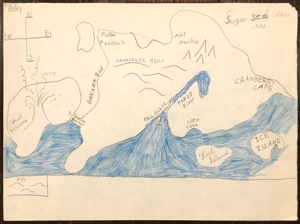 Of course, not every young map nerd grows up to be a cartographer. I recently found this map while helping my parents rescue boxes from their flooding basement. I don’t remember making it, but I’m guessing it was an unfinished geography assignment, or was at least inspired by learning about various landforms in school.