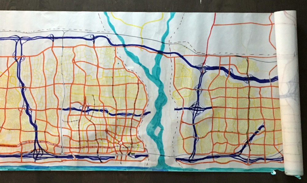 Fischer remembers being more into drawing mazes with his brothers than drawing maps. But in college he stumbled across the obsession that would eventually lead him into cartography. In a library at the University of Chicago, he discovered a bunch of old city transportation planning reports. The one from 1939 contained a plan to build a highway system on top of Chicago’s decaying, 50-year-old elevated train lines.