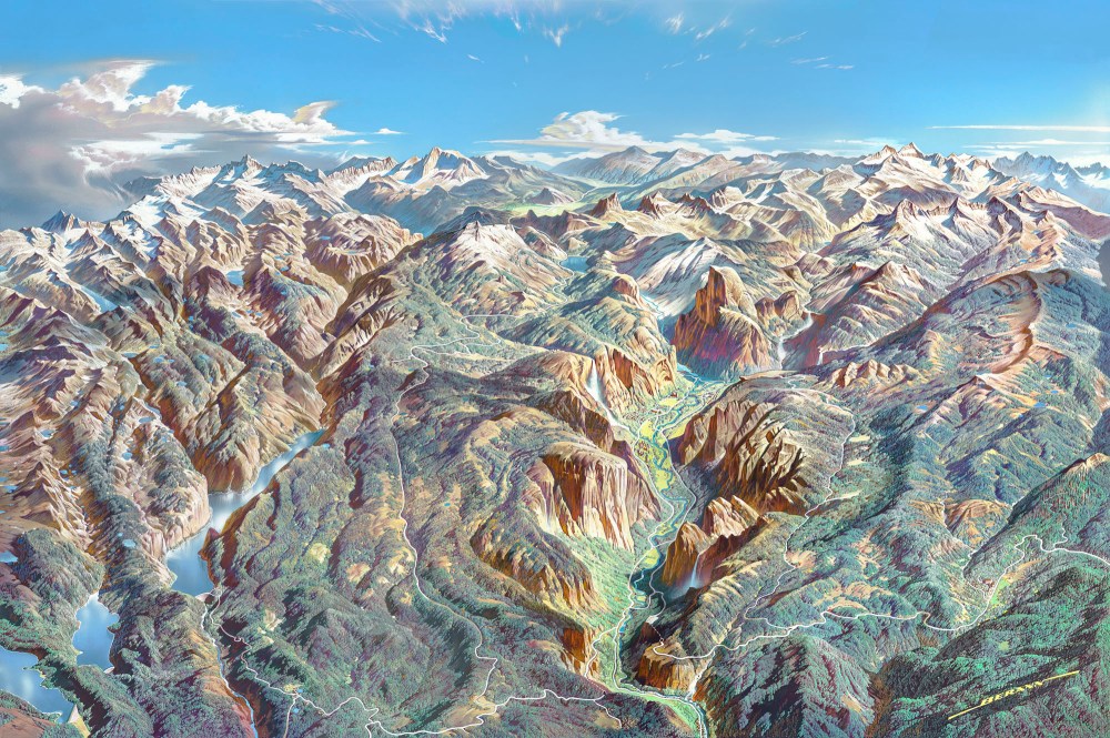 When he can, Patterson tries to incorporate many of Berann’s techniques into his own digital panoramic maps. “Obviously Heinrich Berann is one of my cartographic heroes” he says.