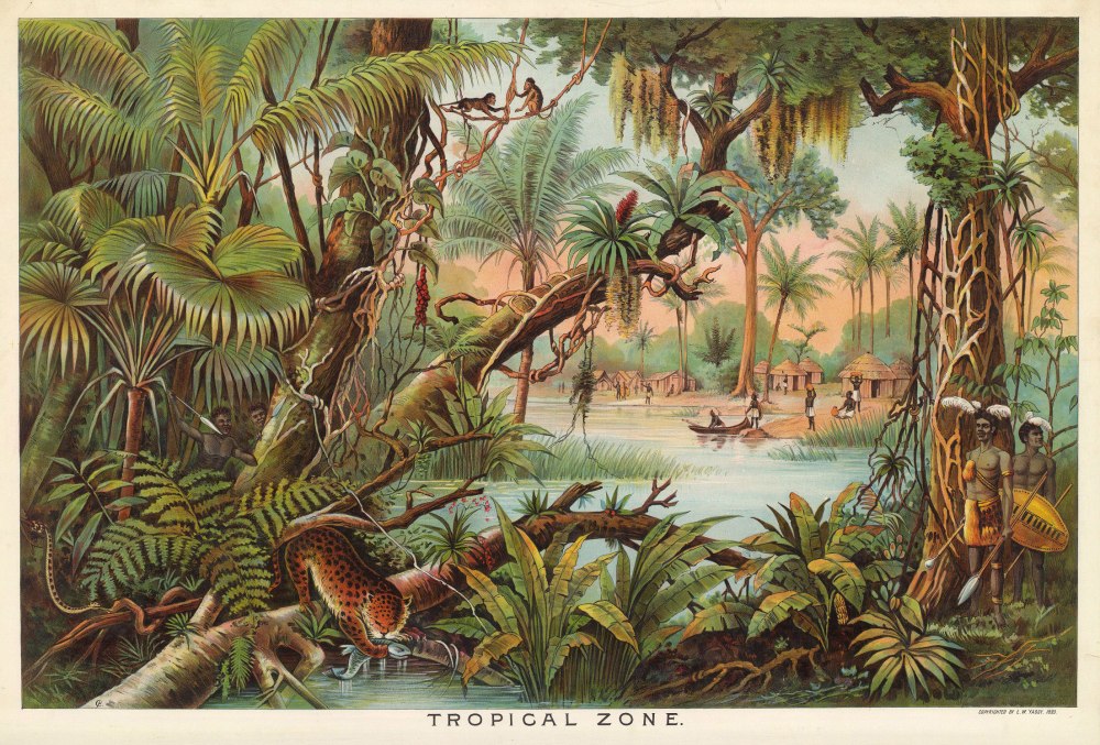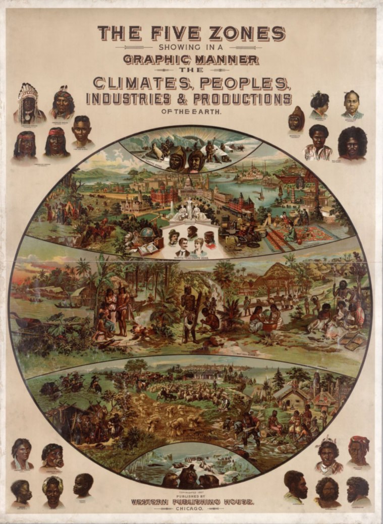 There are additional features of the kit that don’t stand up to modern scrutiny, like a chart showing the world divided into five climatic zones, each populated by a certain type of flora and fauna, and each conducive to certain types of cultures. The chart reflects the racist Victorian-era assumption that temperate climates, such as those in Europe and North America, are fertile ground for advanced civilizations, whereas the tropical climates of Africa and South America promote laziness and self-indulgence, and give rise only to more “primitive” cultures—wholly incorrect by every modern scientific and anthropological standard.
