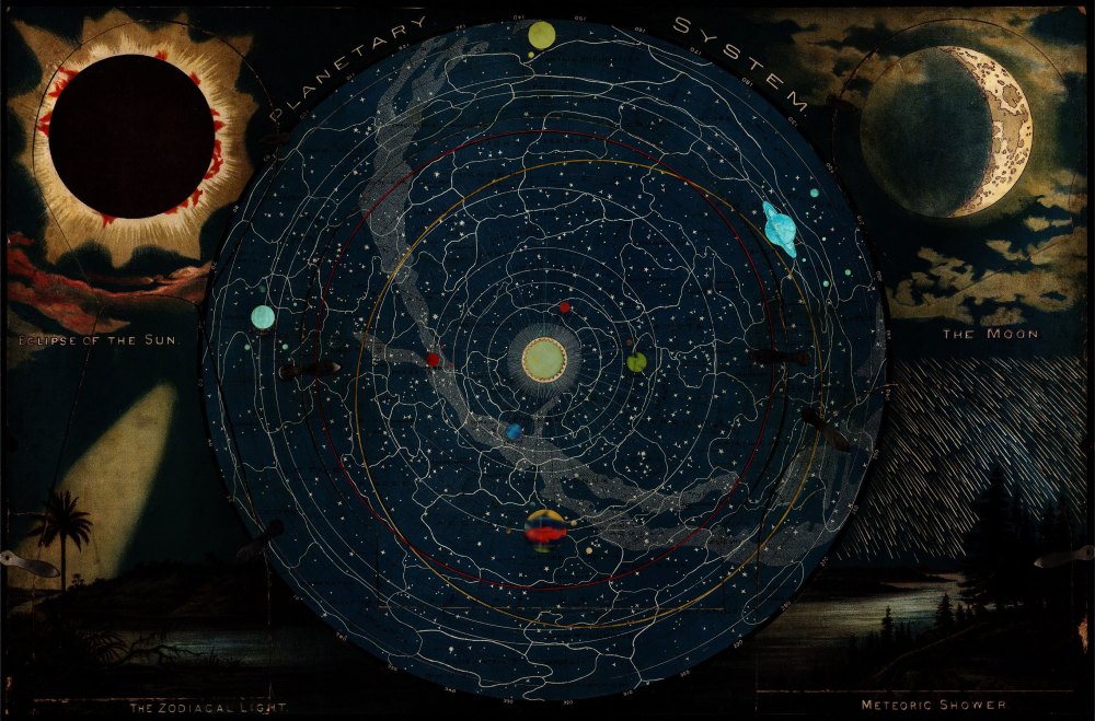 FOR 19TH-CENTURY SCHOOLCHILDREN, this colorful star chart would have brought astronomy brilliantly to life. Through vivid images, hidden flaps and sliders, and clever use of lighting effects, the chart was designed to help teachers illustrate Earth’s place in the universe.