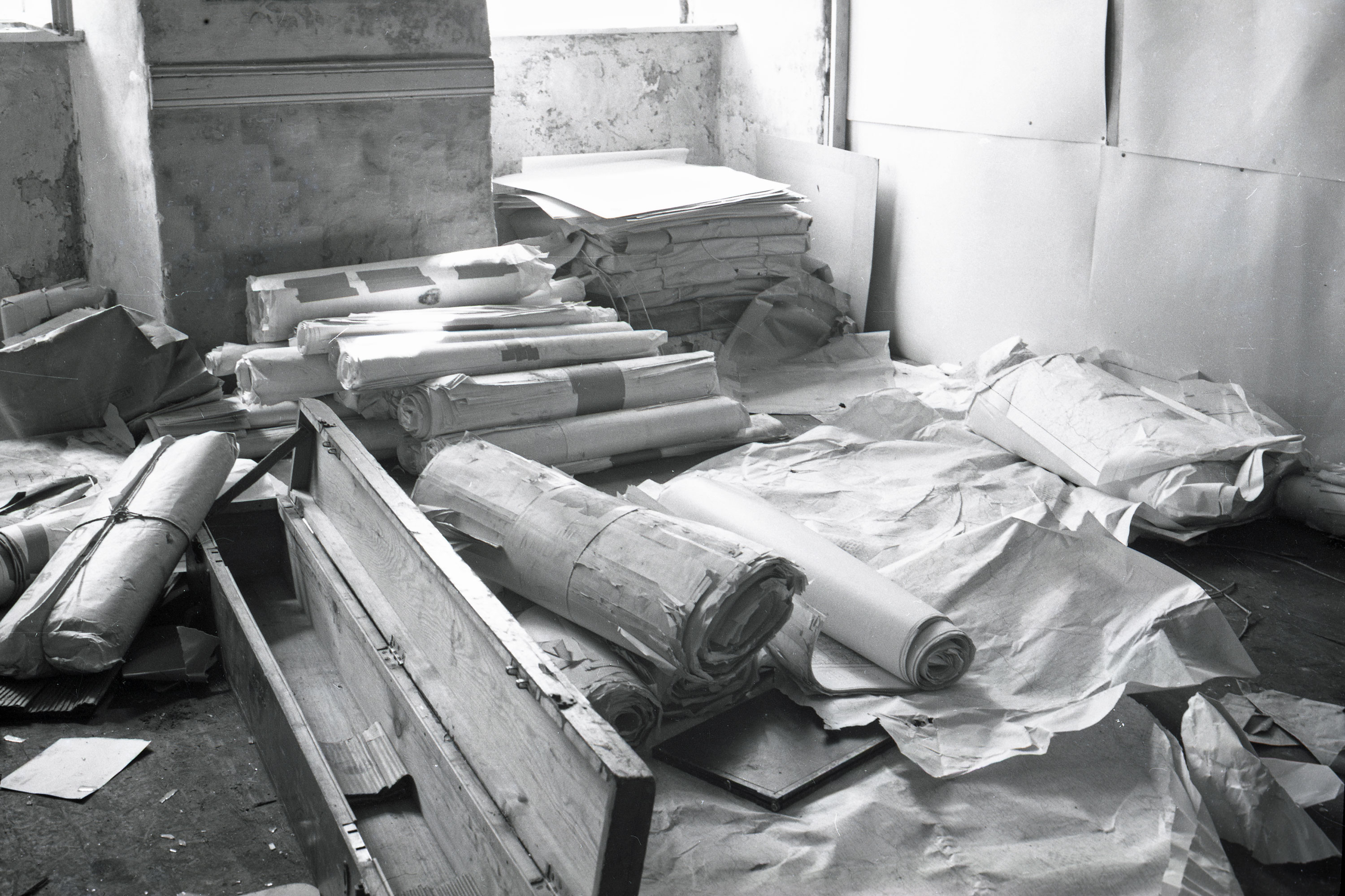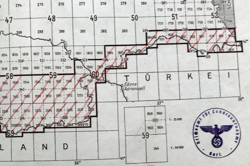 In Bamberg’s city hall, Hough established a new headquarters for the team, and commandeered nearly an acre of storage space for sorting the captured material. The team culled this to 90 tons of maps, aerial photographs, high-quality geodetic survey instruments and reams of printed data, which they packed into 1,200 boxes to be shipped to the Army Map Service in Washington.