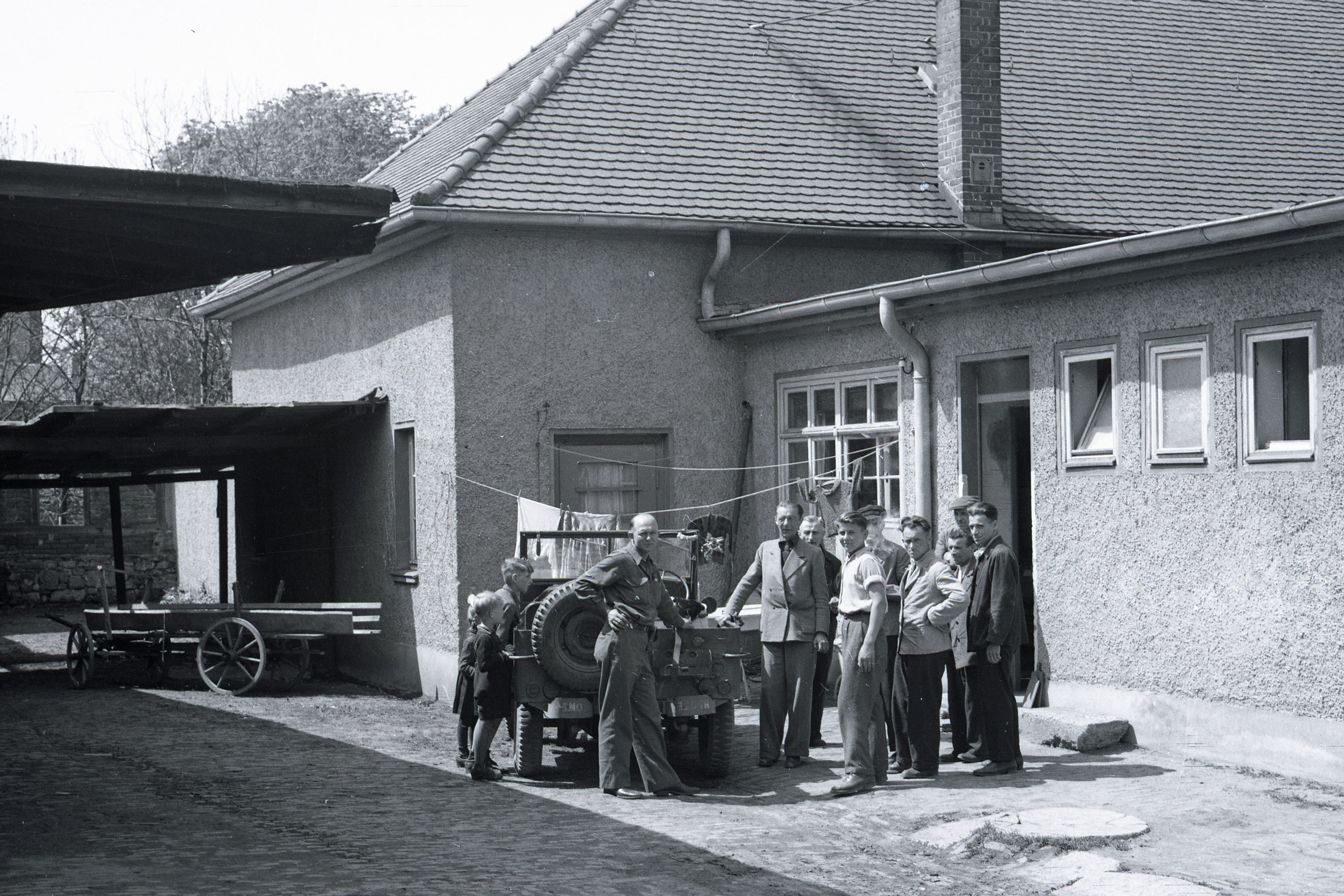 Saalfeld was about 50 miles to the southeast of HOUGHTEAM’s position. Hough, Mills and five enlisted men arrived on April 17, four days after the U.S. 87th Infantry Division captured the town. The train station and nearby factories had been bombed, and several fully loaded freight cars were in the process of being looted. Some of the dead had yet to be buried. The 87th had kept on rolling to the east without pausing to set up a military government.
